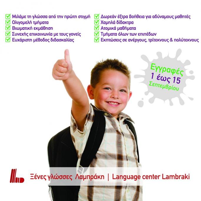 Το Κέντρο Ξένων Γλωσσών Λαμπράκη καθιστά την εκμάθηση των γλωσσών εύκολη και διασκεδαστική, χρησιμοποιώντας όλες τις σύγχρονες μεθόδους, όπως οπτικοακουστικά μέσα, διαδραστικούς πίνακες, υπολογιστές, βιωματική διδασκαλία, κ.α., χρησιμοποιώντας τη γλώσσα από την πρώτη στιγμή.